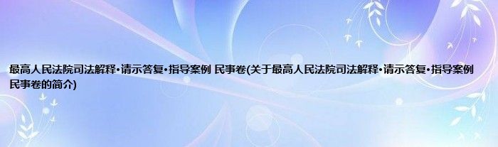 本文关于最高人民法院司法解释·请示答复·指导案例 民事卷的简介就讲解完毕,希望对大家有所帮助。