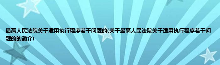 本文关于最高人民法院关于适用执行程序若干问题的的简介就讲解完毕,希望对大家有所帮助。