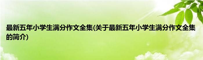 本文关于最新五年小学生满分作文全集的简介就讲解完毕,希望对大家有所帮助。