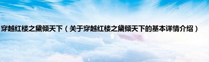本文关于穿越红楼之黛倾天下的基本详情介绍就讲解完毕,希望对大家有所帮助。
