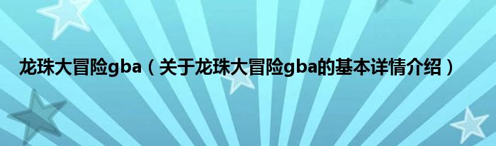 本文关于龙珠大冒险gba的基本详情介绍就讲解完毕,希望对大家有所帮助。