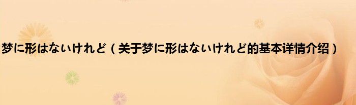 本文关于梦に形はないけれど的基本详情介绍就讲解完毕,希望对大家有所帮助。