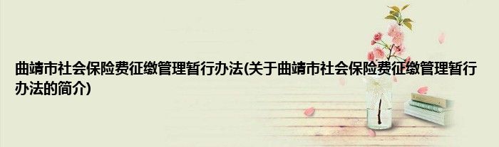 曲靖市社会保险费征缴管理暂行办法(关于曲靖市社会保险费征缴管理暂行办法的简介)