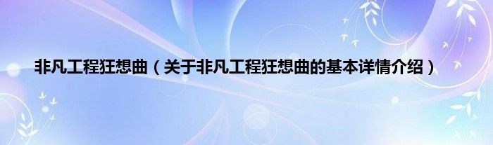 本文关于非凡工程狂想曲的基本详情介绍就讲解完毕,希望对大家有所帮助。