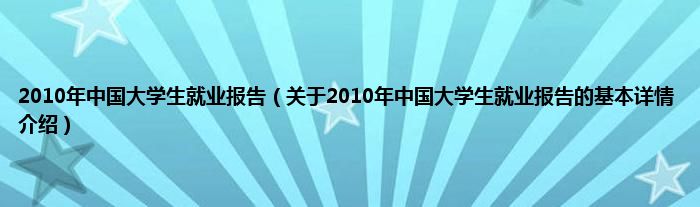 本文关于2010年中国大学生就业报告的基本详情介绍就讲解完毕,希望对大家有所帮助。