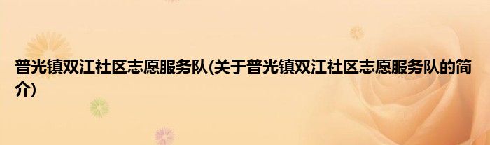 本文关于普光镇双江社区志愿服务队的简介就讲解完毕,希望对大家有所帮助。