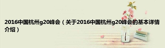 本文关于2016中国杭州g20峰会的基本详情介绍就讲解完毕,希望对大家有所帮助。