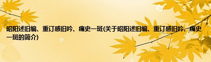 本文关于昭阳述旧编、重订感旧吟、痛史一斑的简介就讲解完毕,希望对大家有所帮助。