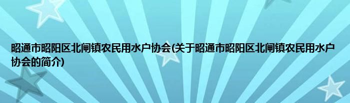 本文关于昭通市昭阳区北闸镇农民用水户协会的简介就讲解完毕,希望对大家有所帮助。