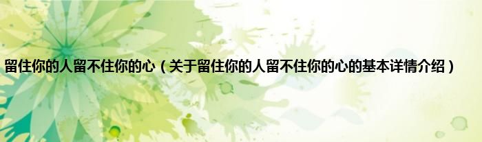 本文关于留住你的人留不住你的心的基本详情介绍就讲解完毕,希望对大家有所帮助。