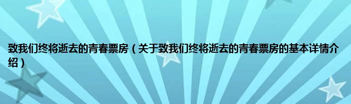 本文关于致我们终将逝去的青春票房的基本详情介绍就讲解完毕,希望对大家有所帮助。