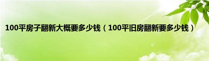 以上就是【100平房子翻新大概要多少钱,100平旧房翻新要多少钱】相关内容。