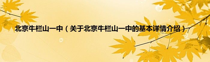 本文关于北京牛栏山一中的基本详情介绍就讲解完毕,希望对大家有所帮助。