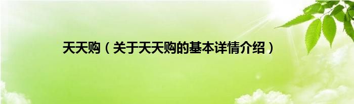 本文关于天天购的基本详情介绍就讲解完毕,希望对大家有所帮助。