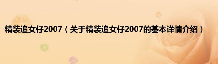 本文关于精装追女仔2007的基本详情介绍就讲解完毕,希望对大家有所帮助。