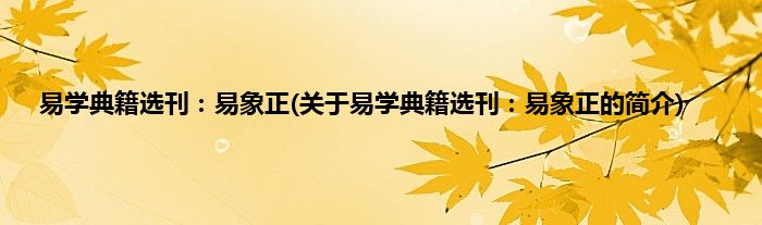 本文关于易学典籍选刊:易象正的简介就讲解完毕,希望对大家有所帮助。