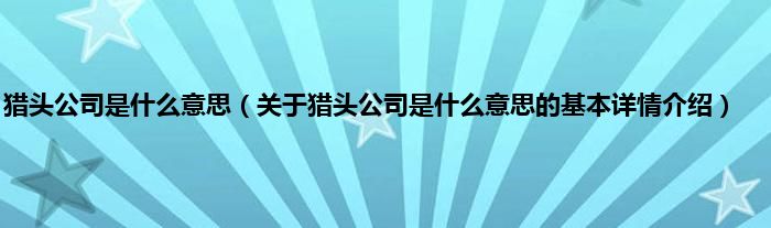 本文关于猎头公司是什么意思的基本详情介绍就讲解完毕,希望对大家有所帮助。