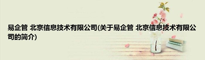 本文关于易企管 北京信息技术有限公司的简介就讲解完毕,希望对大家有所帮助。