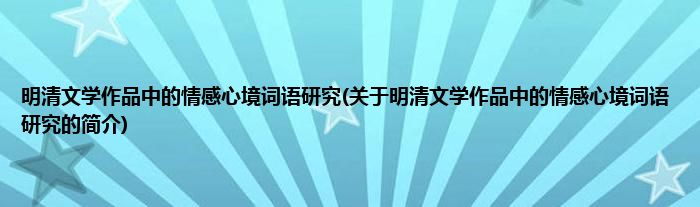 大家好,明清文学作品中的情感心境词语研究,关于明清文学作品中的情感心境词语研究的简介很多人还不知道,现在让我们一起来看看吧!