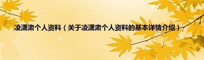本文关于凌潇肃个人资料的基本详情介绍就讲解完毕,希望对大家有所帮助。