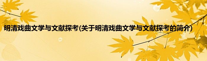 本文关于明清戏曲文学与文献探考的简介就讲解完毕,希望对大家有所帮助。