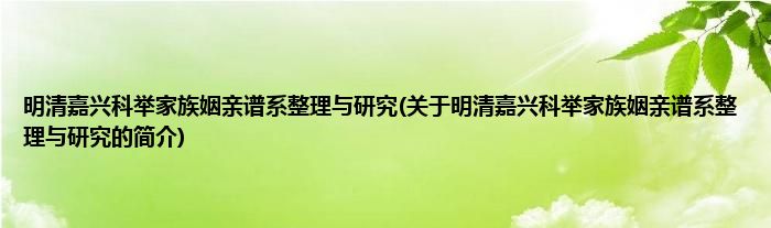 本文关于明清嘉兴科举家族姻亲谱系整理与研究的简介就讲解完毕,希望对大家有所帮助。