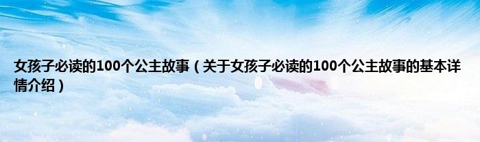 本文关于女孩子必读的100个公主故事的基本详情介绍就讲解完毕,希望对大家有所帮助。
