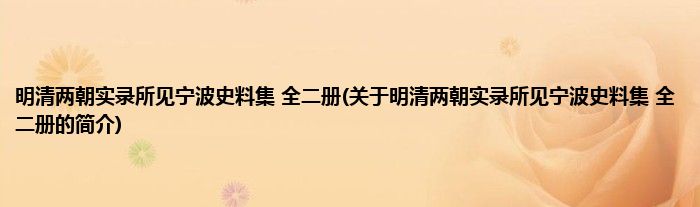 本文关于明清两朝实录所见宁波史料集 全二册的简介就讲解完毕,希望对大家有所帮助。