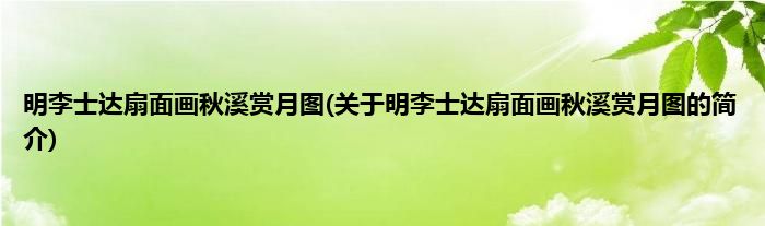 本文关于明李士达扇面画秋溪赏月图的简介就讲解完毕,希望对大家有所帮助。