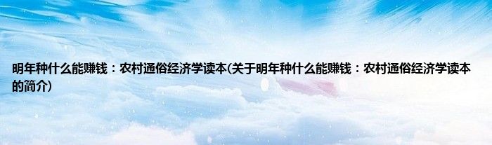 本文关于明年种什么能赚钱:农村通俗经济学读本的简介就讲解完毕,希望对大家有所帮助。