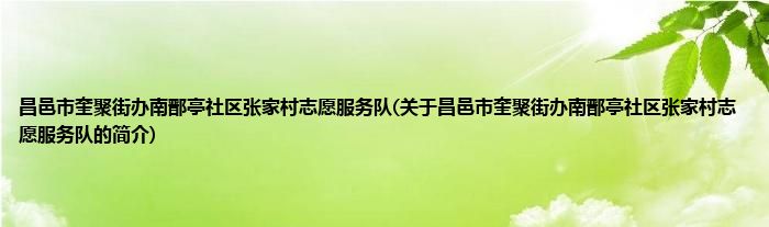 本文关于昌邑市奎聚街办南鄑亭社区张家村志愿服务队的简介就讲解完毕,希望对大家有所帮助。
