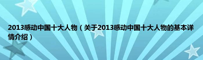 本文关于2013感动中国十大人物的基本详情介绍就讲解完毕,希望对大家有所帮助。