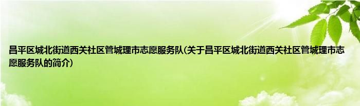 本文关于昌平区城北街道西关社区管城理市志愿服务队的简介就讲解完毕,希望对大家有所帮助。