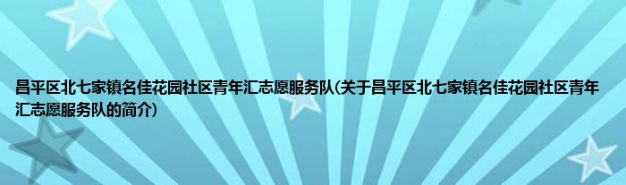 本文关于昌平区北七家镇名佳花园社区青年汇志愿服务队的简介就讲解完毕,希望对大家有所帮助。