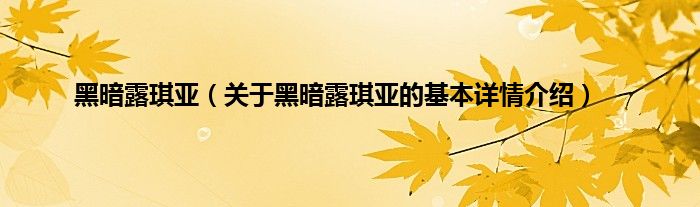 本文关于黑暗露琪亚的基本详情介绍就讲解完毕,希望对大家有所帮助。