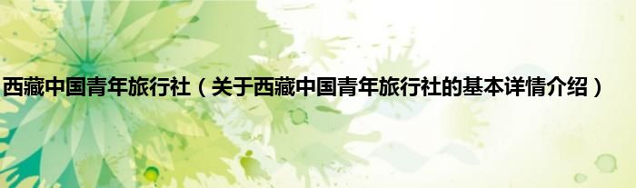 本文关于西藏中国青年旅行社的基本详情介绍就讲解完毕,希望对大家有所帮助。