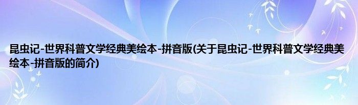 本文关于昆虫记-世界科普文学经典美绘本-拼音版的简介就讲解完毕,希望对大家有所帮助。