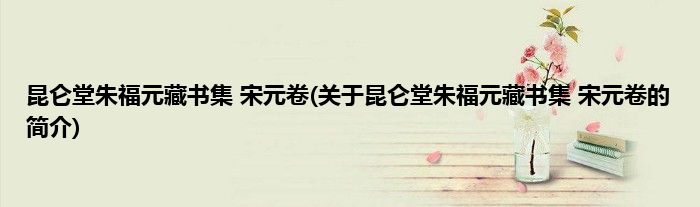 本文关于昆仑堂朱福元藏书集 宋元卷的简介就讲解完毕,希望对大家有所帮助。