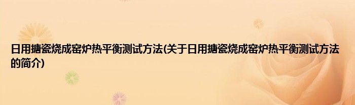 本文关于日用搪瓷烧成窑炉热平衡测试方法的简介就讲解完毕,希望对大家有所帮助。