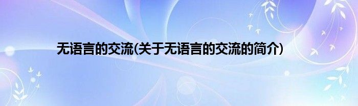 本文关于无语言的交流的简介就讲解完毕,希望对大家有所帮助。