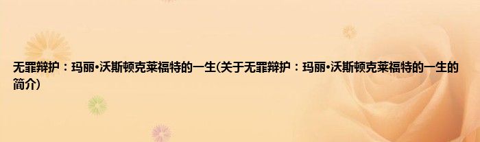 本文关于无罪辩护:玛丽·沃斯顿克莱福特的一生的简介就讲解完毕,希望对大家有所帮助。