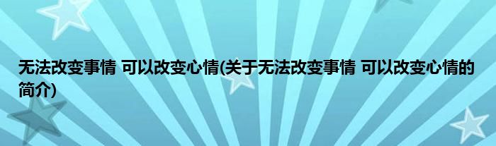 无法改变事情 可以改变心情(关于无法改变事情 可以改变心情的简介)