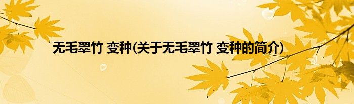 本文关于无毛翠竹 变种的简介就讲解完毕,希望对大家有所帮助。