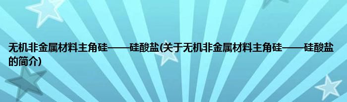 无机非金属材料主角硅——硅酸盐(关于无机非金属材料主角硅——硅酸盐的简介)