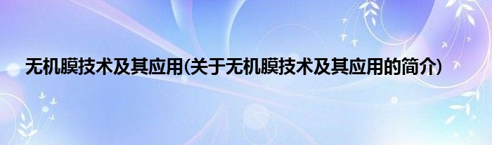 无机膜技术及其应用(关于无机膜技术及其应用的简介)