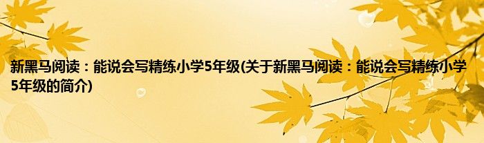 本文关于新黑马阅读:能说会写精练小学5年级的简介就讲解完毕,希望对大家有所帮助。