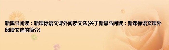 本文关于新黑马阅读:新课标语文课外阅读文选的简介就讲解完毕,希望对大家有所帮助。