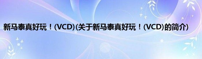 大家好,新马泰真好玩!,VCD,关于新马泰真好玩!,VCD的简介很多人还不知道,现在让我们一起来看看吧!