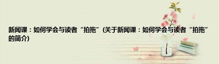 本文关于新闻课:如何学会与读者“拍拖”的简介就讲解完毕,希望对大家有所帮助。