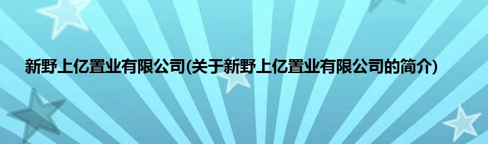 本文关于新野上亿置业有限公司的简介就讲解完毕,希望对大家有所帮助。